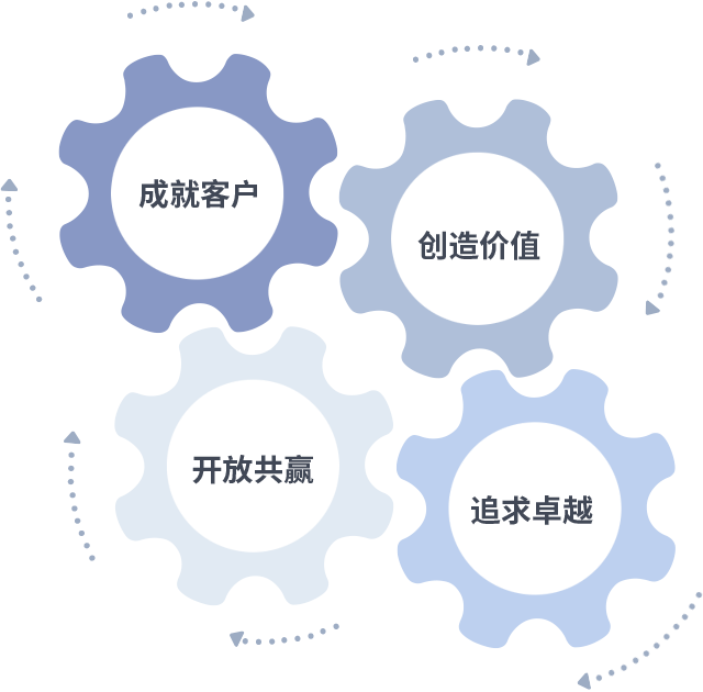成就客户是一切决策的出发点,创造价值是衡量所有工作的标准,追求卓越是尊龙人生就是博首页做事做人的态度,开放共赢是尊龙人生就是博首页的格局也是最终的结果。价值观的齿轮环环相扣,推动着组织里的每个人不断向前。